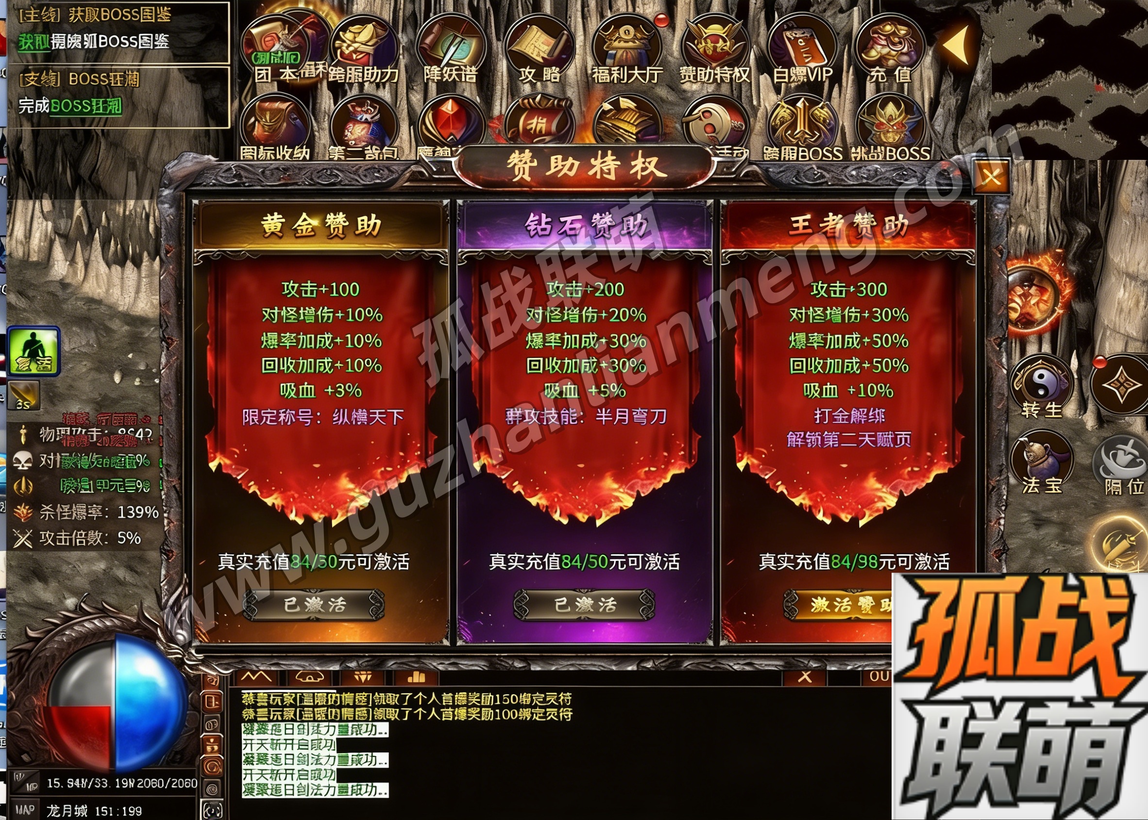 元宝 灵符 赞助 vip 月卡 累充 各种福利 沙城捐献