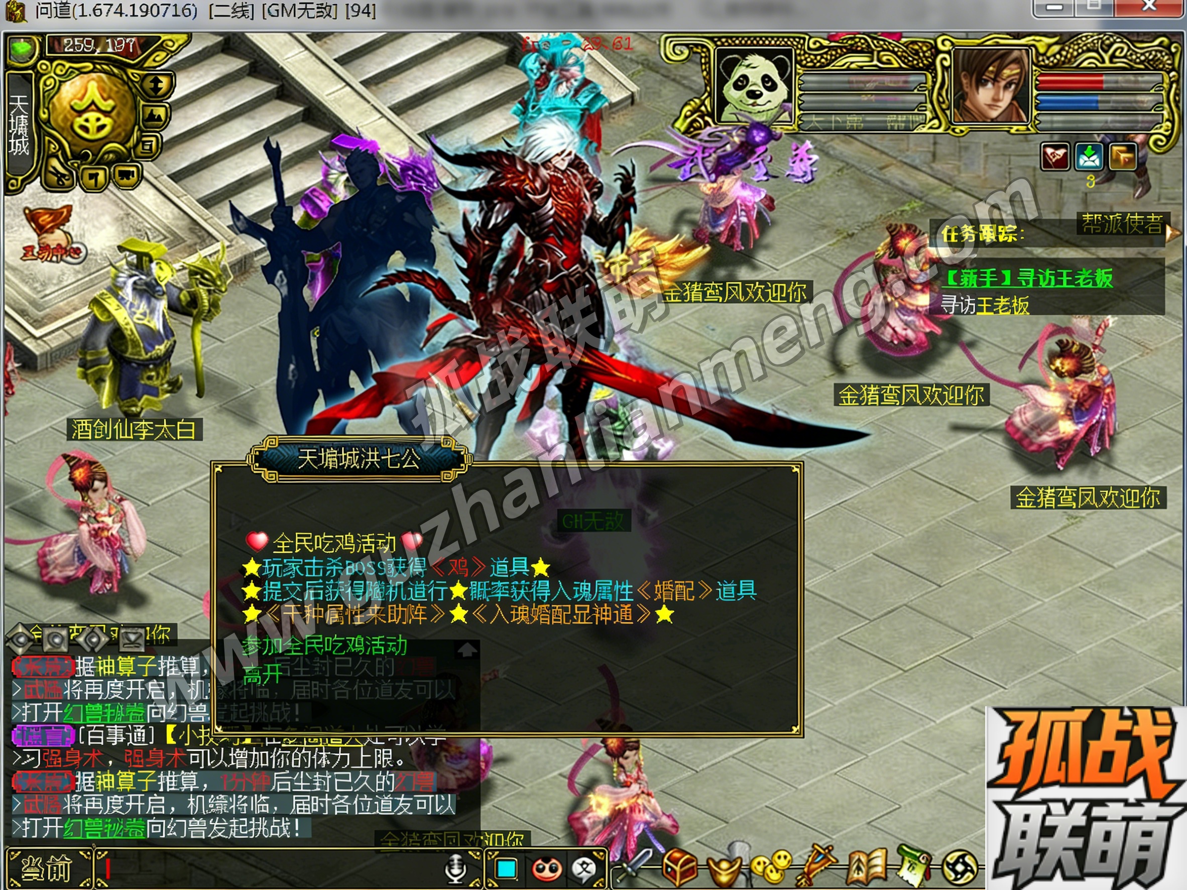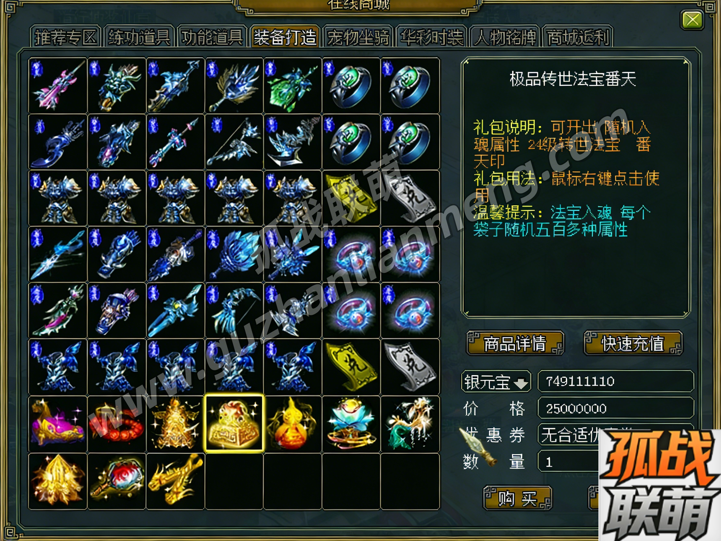 核心打金抽奖玩法,材料可抽可合,道具有增强版,入魂 7000 + 属性最高 X5,GM 线设 X10 道具。