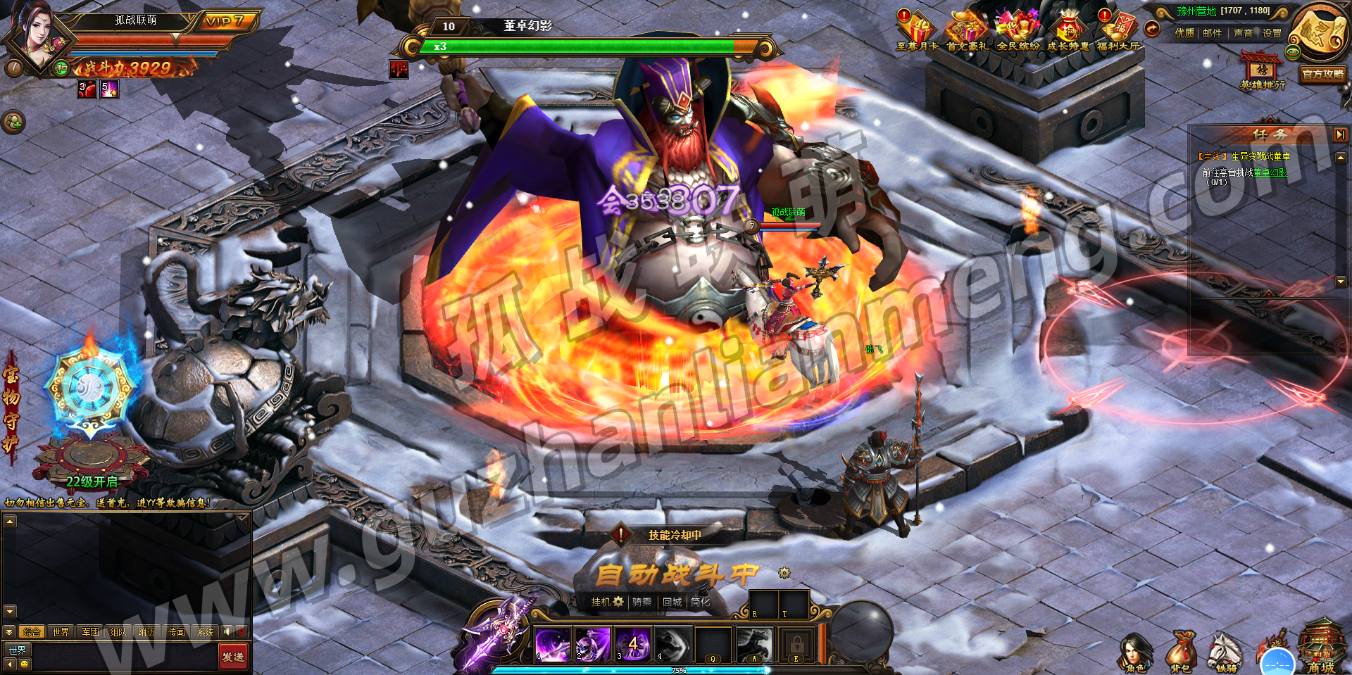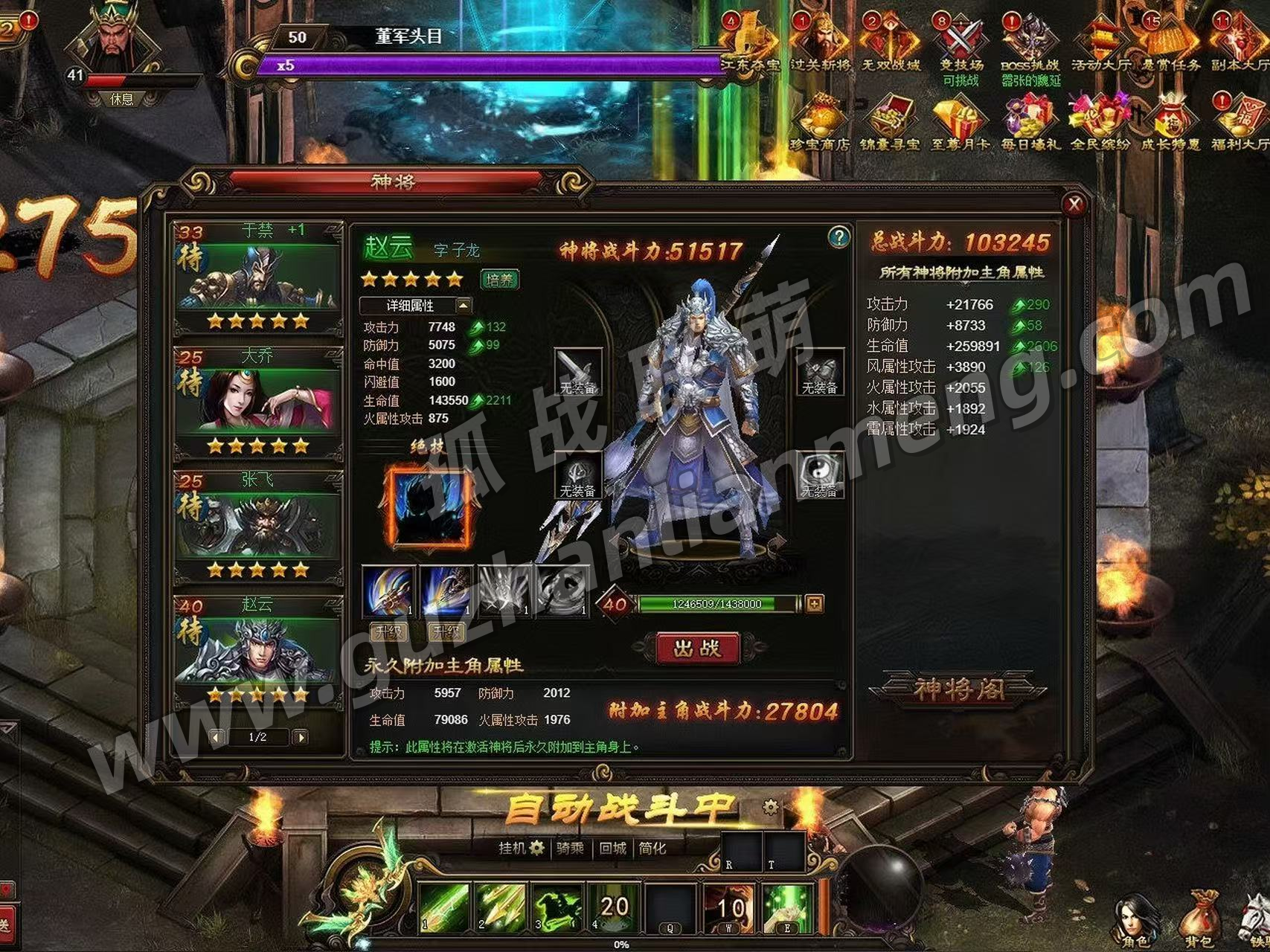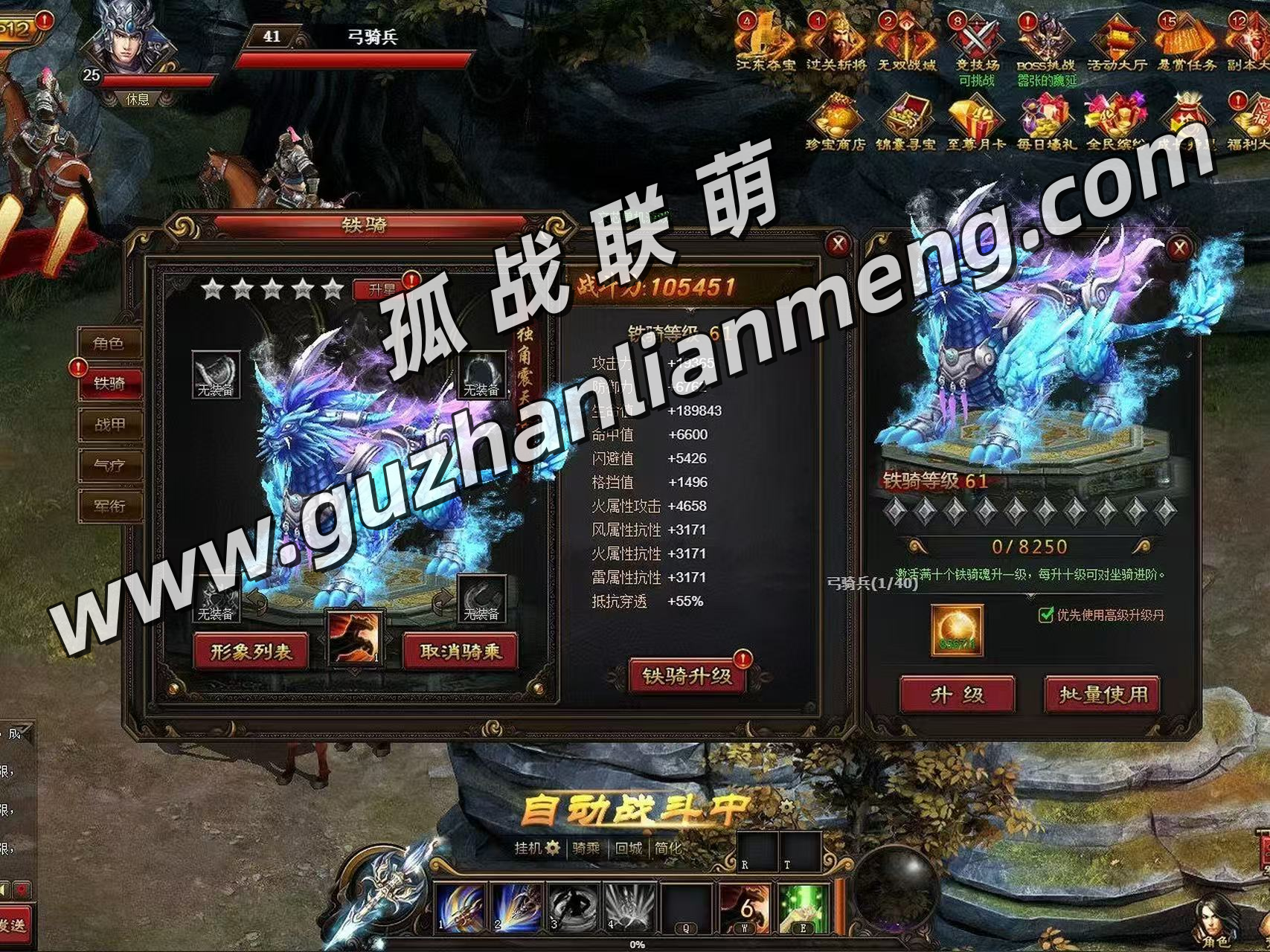 三国题材的页游,玩起来非常流畅,玩到100级没有任何BUG,画面打击感很足,6种神器,带6种技能,可以来回切换,坐骑养成,三国名将
