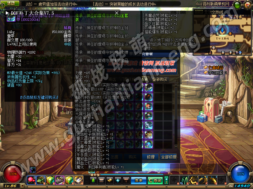辛达npc商店还出售所有职业的20级到80级紫装和粉,拍卖行也有各种低级传承、紫装、粉装出售绝对的细节拉满。