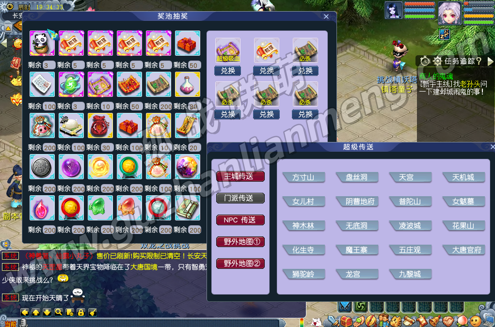 – 新人福利:每个角色自动获得新人礼包,内含超级泡泡(完成主线剧情获取)、经验若干;拜完师门可领取120无级别装备一套,跟随系统剧情任务升级即可。