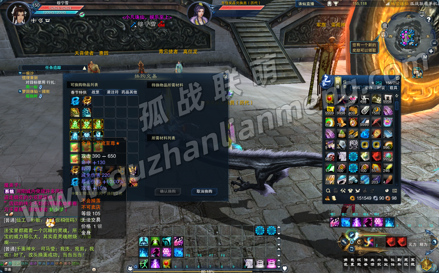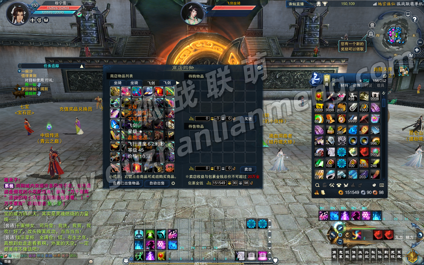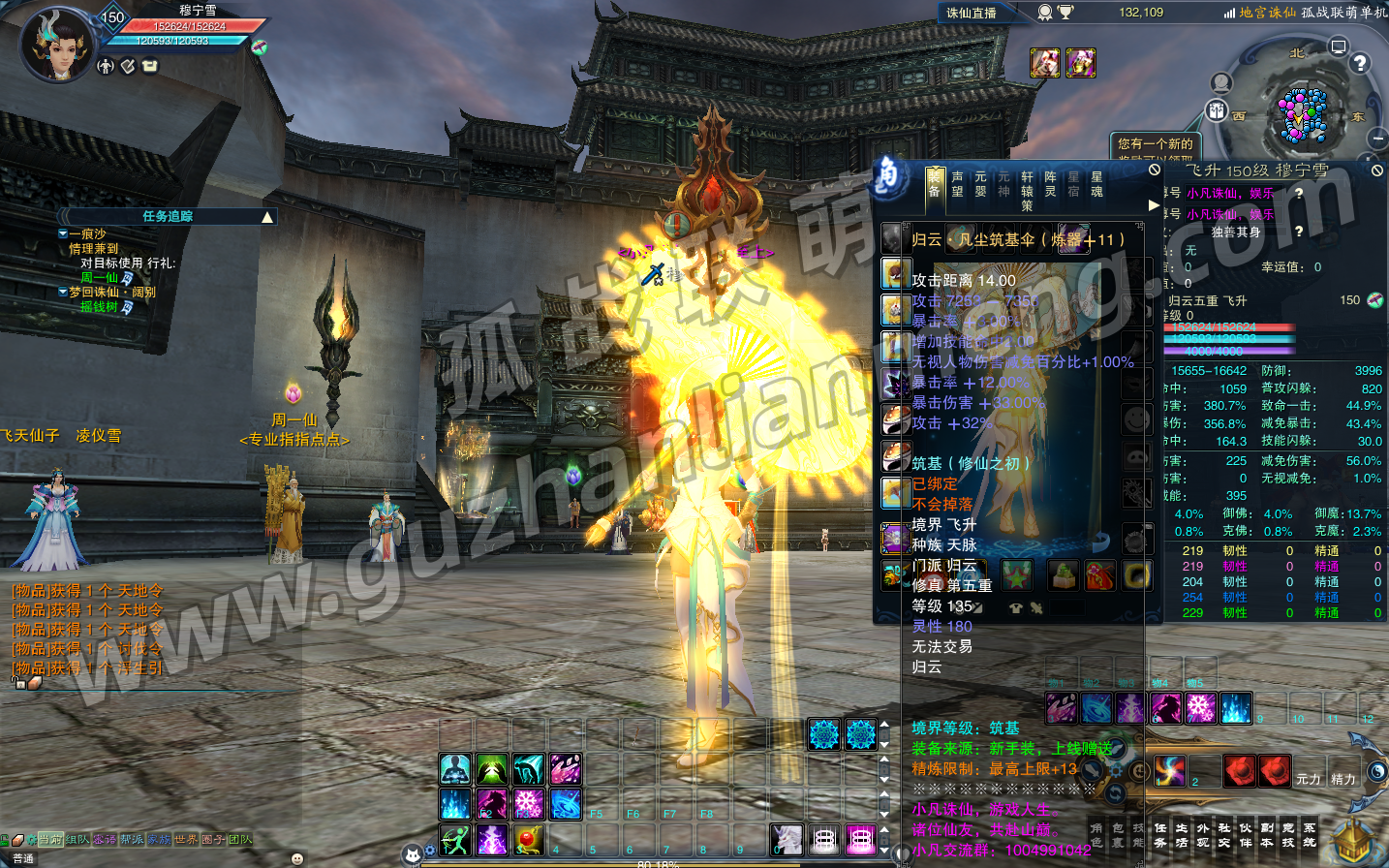 1. 上线自动150级,飞升后吃九华丹魄直升135,赠基础装备、铁玉,蛮荒城外掉新手戒指。
