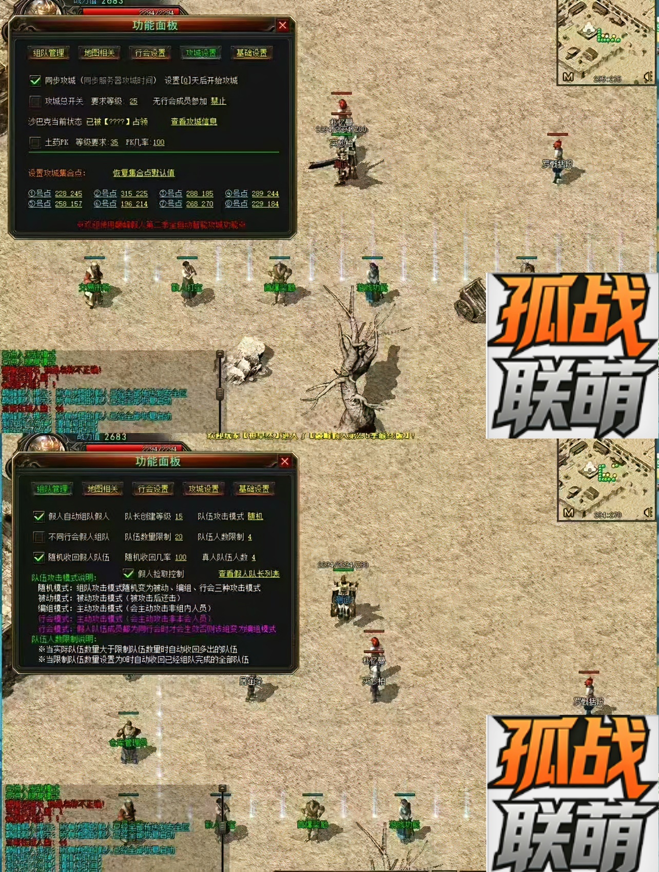 11.完善:优化假人模拟攻城系统、假人行会会长可在自定义集合点召集行会成员进行攻沙。