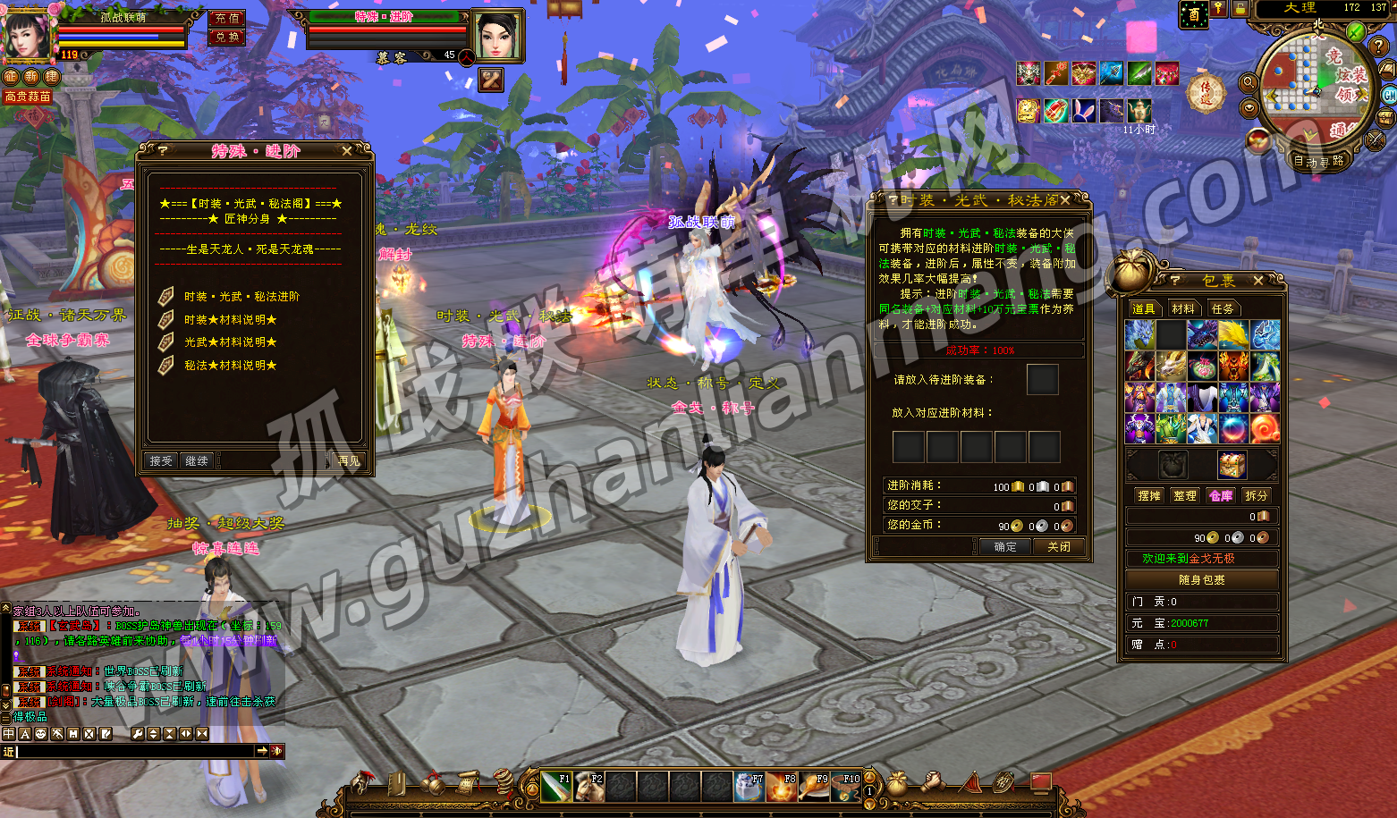 2新增多颗强力四属性宝石、修罗 / 战神宝石,增设光武神器进阶,顶级称号、时装、戒指护符可兑换。