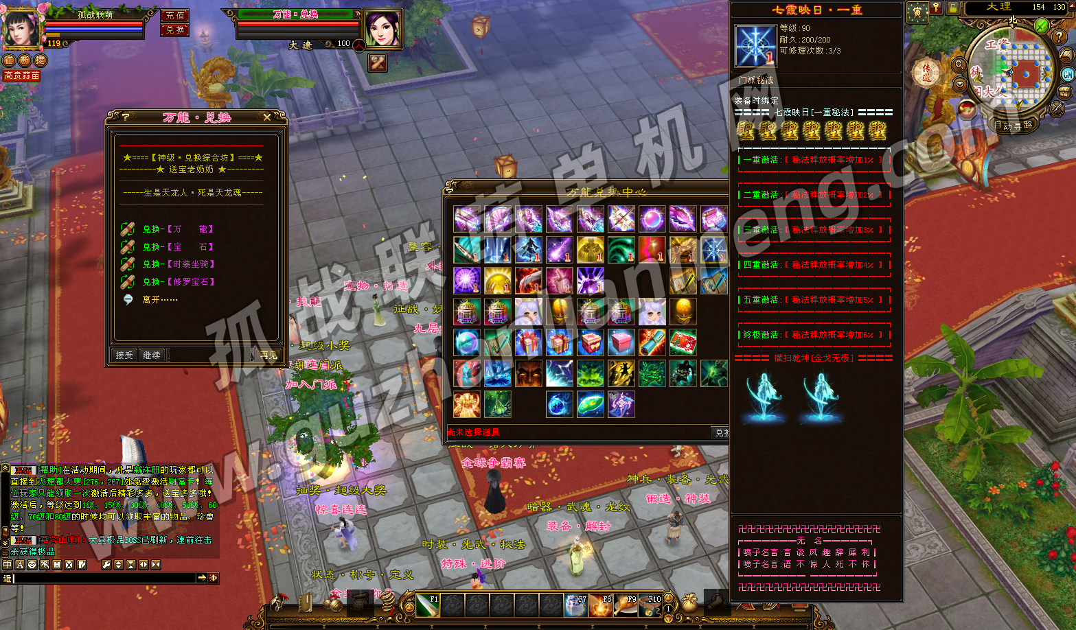 3龙纹、武魂、暗器解封界面升级,同时上线装备一键转移,换装不用再下宝石。