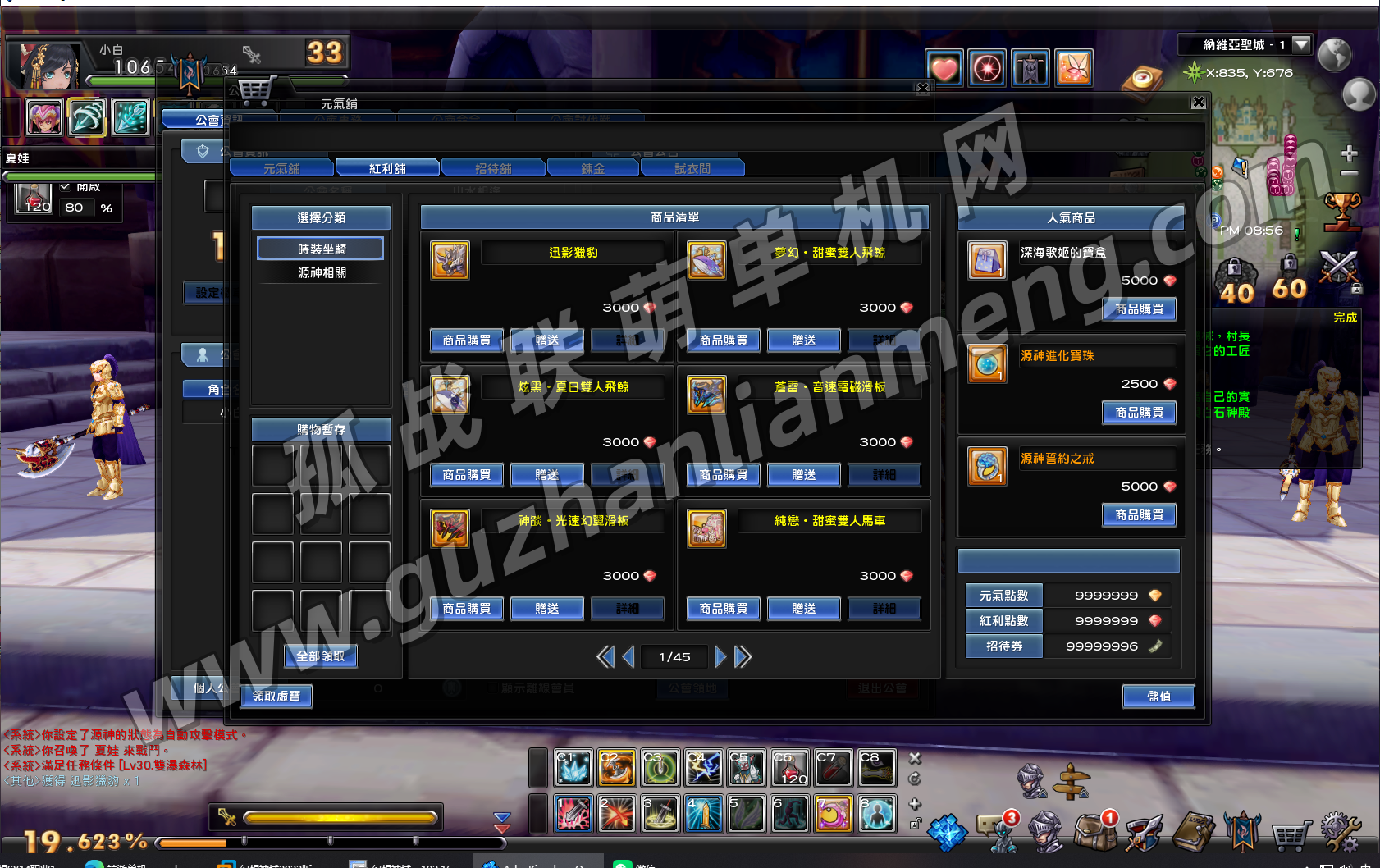 3.商店加入600页 时装 坐骑 源神 翅膀 各种材料,兑换方便