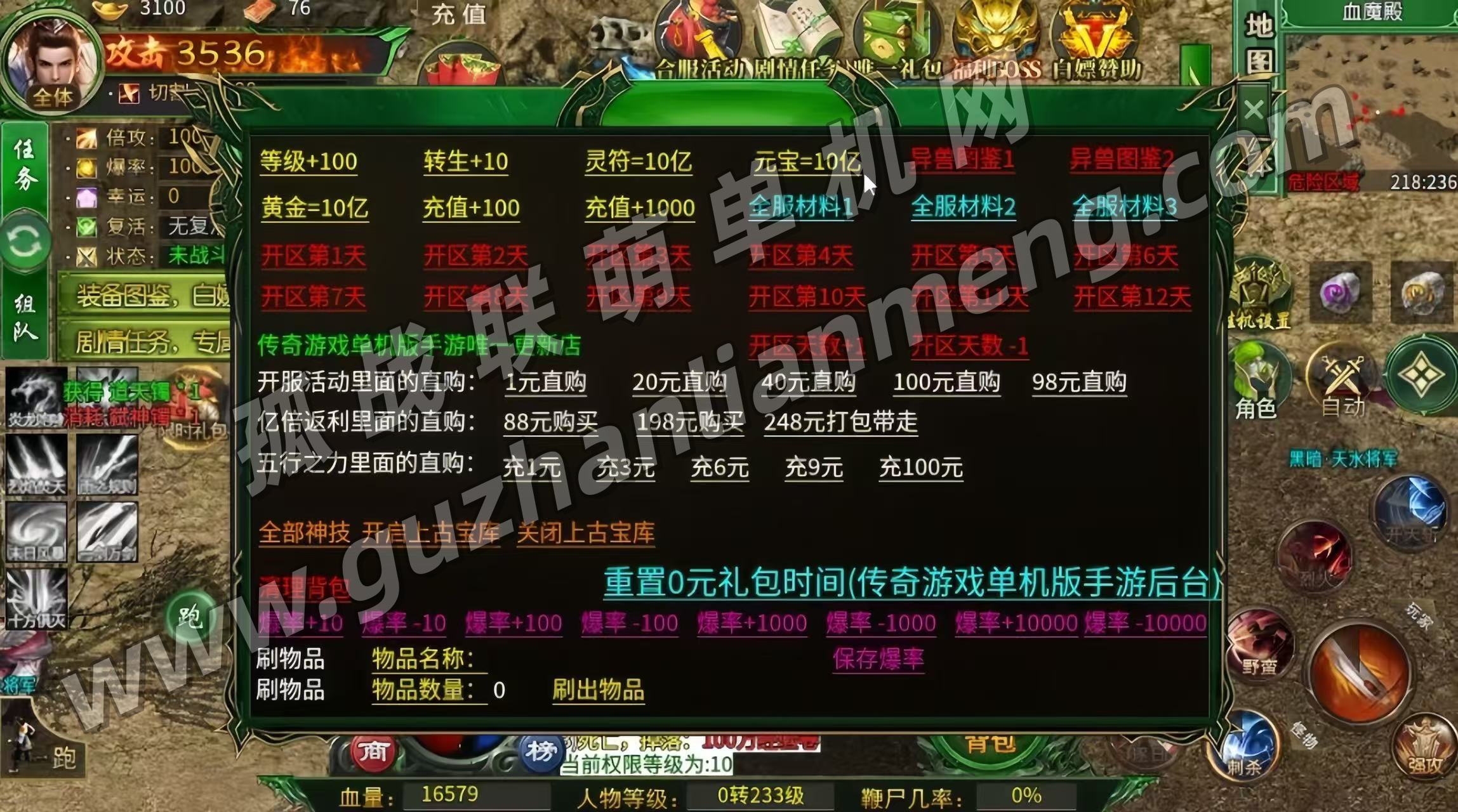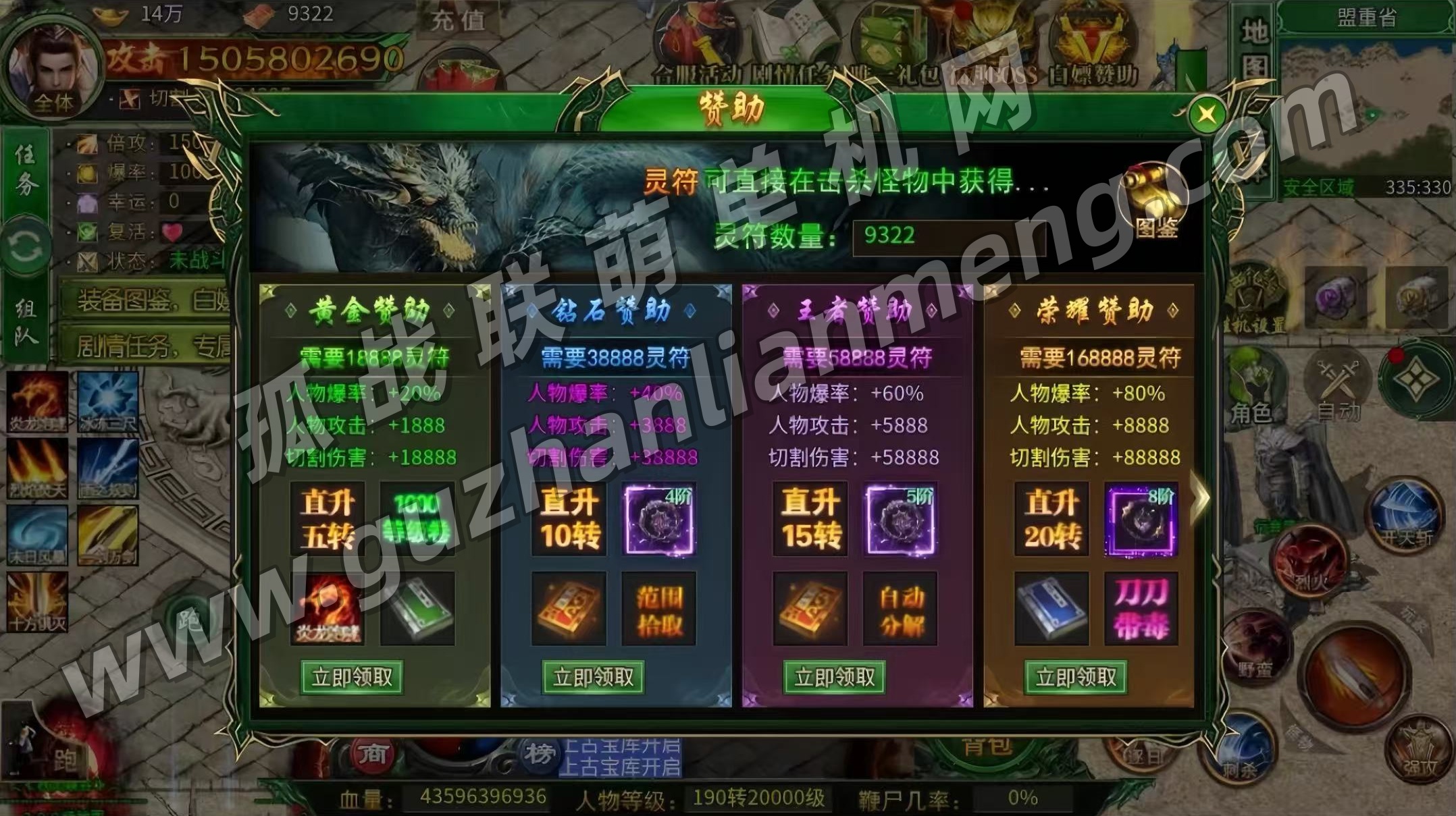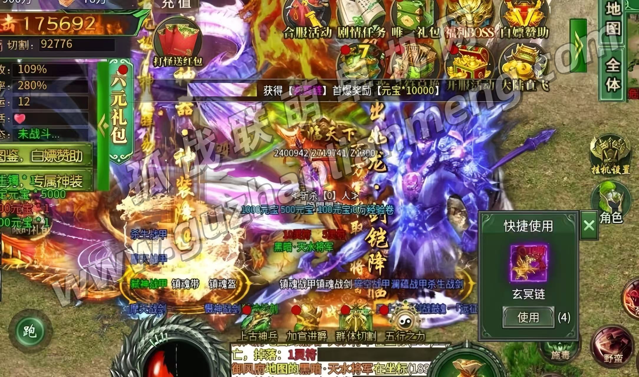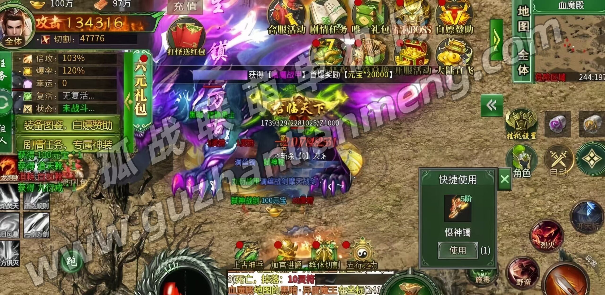 自动挂机 全屏拾取 顶级赞助 各种充值福利直接刷 游戏内容太多了 自行体验